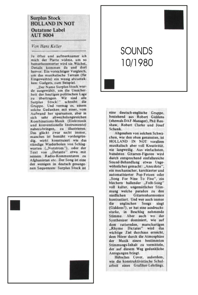 Holland in Not was the first Surplus Stock LP. Robert Giddens produced the first DAF recordings at Cargo Studio in Rochdale. The recordings for Holland In Not took place there in April 1980. Now 43 years later, it’s available on all streaming services. Available on September 1, 2023.