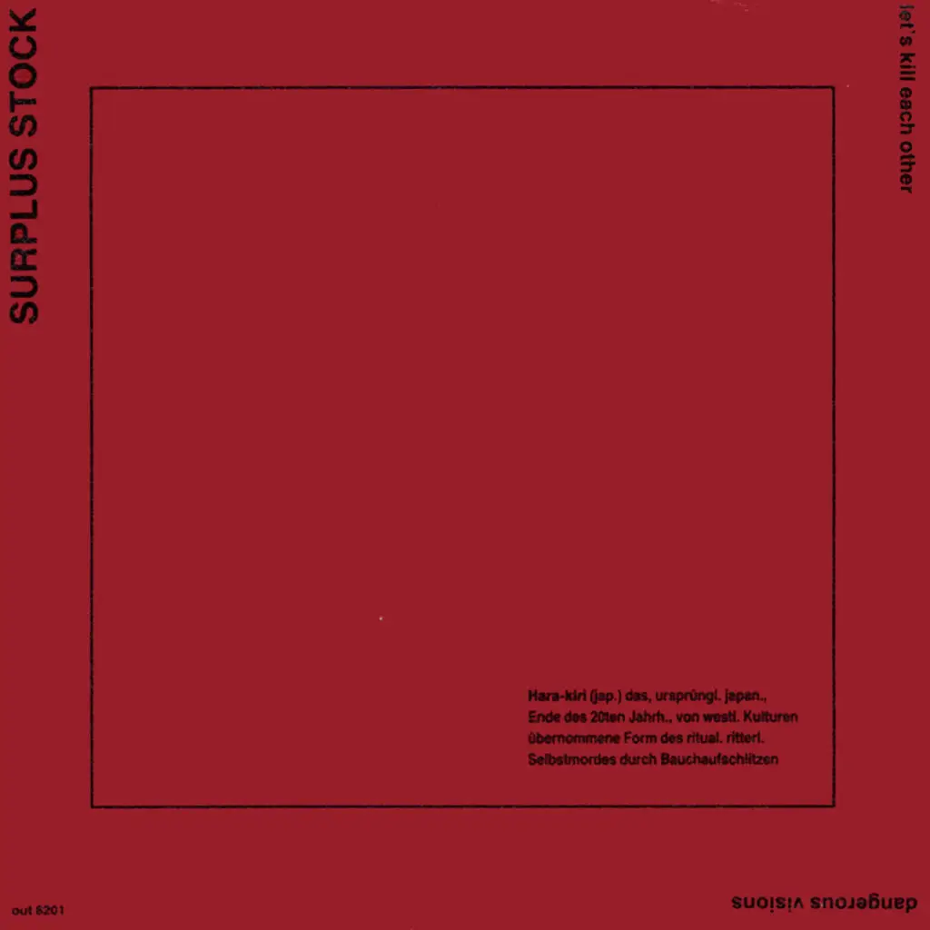 With the 12″ EP Dance Ersatz, SURPLUS STOCK became more of a band. The line-up included Wissi, Harald Schmidt (Dorfcafé), Tex Morton and a very young Carsten Möhring. The record was released on red vinyl and distributed internationally through Rough Trade. Tracks like Lady Is a Tramp and Ladies Day combined reinterpretation with original material.